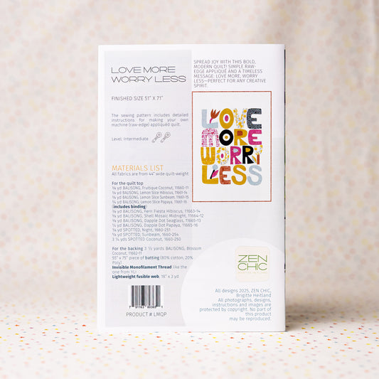 Love More Worry Less Paper Pattern by Zen Chic