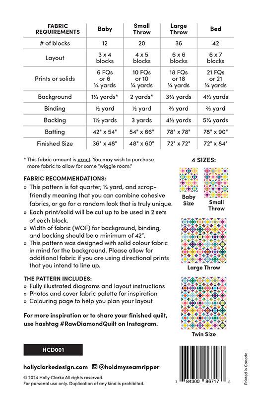 Raw Diamond Quilt Pattern by Holly Calrke Design