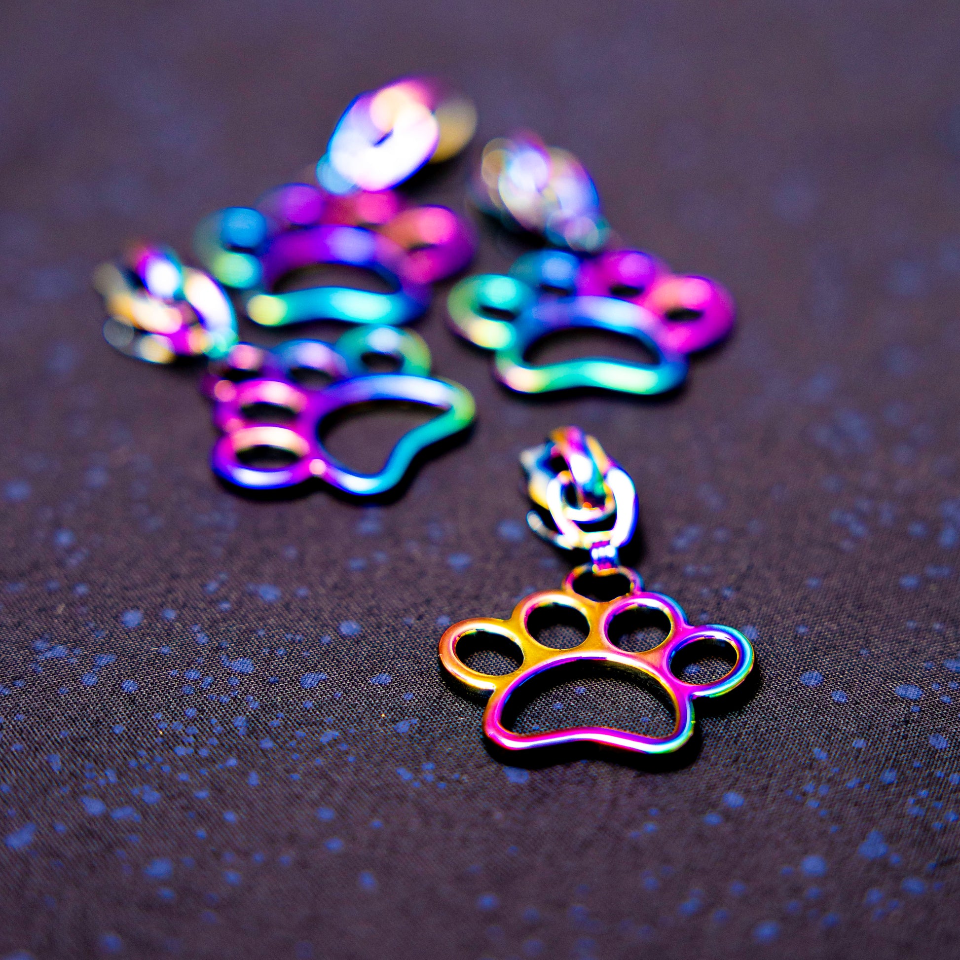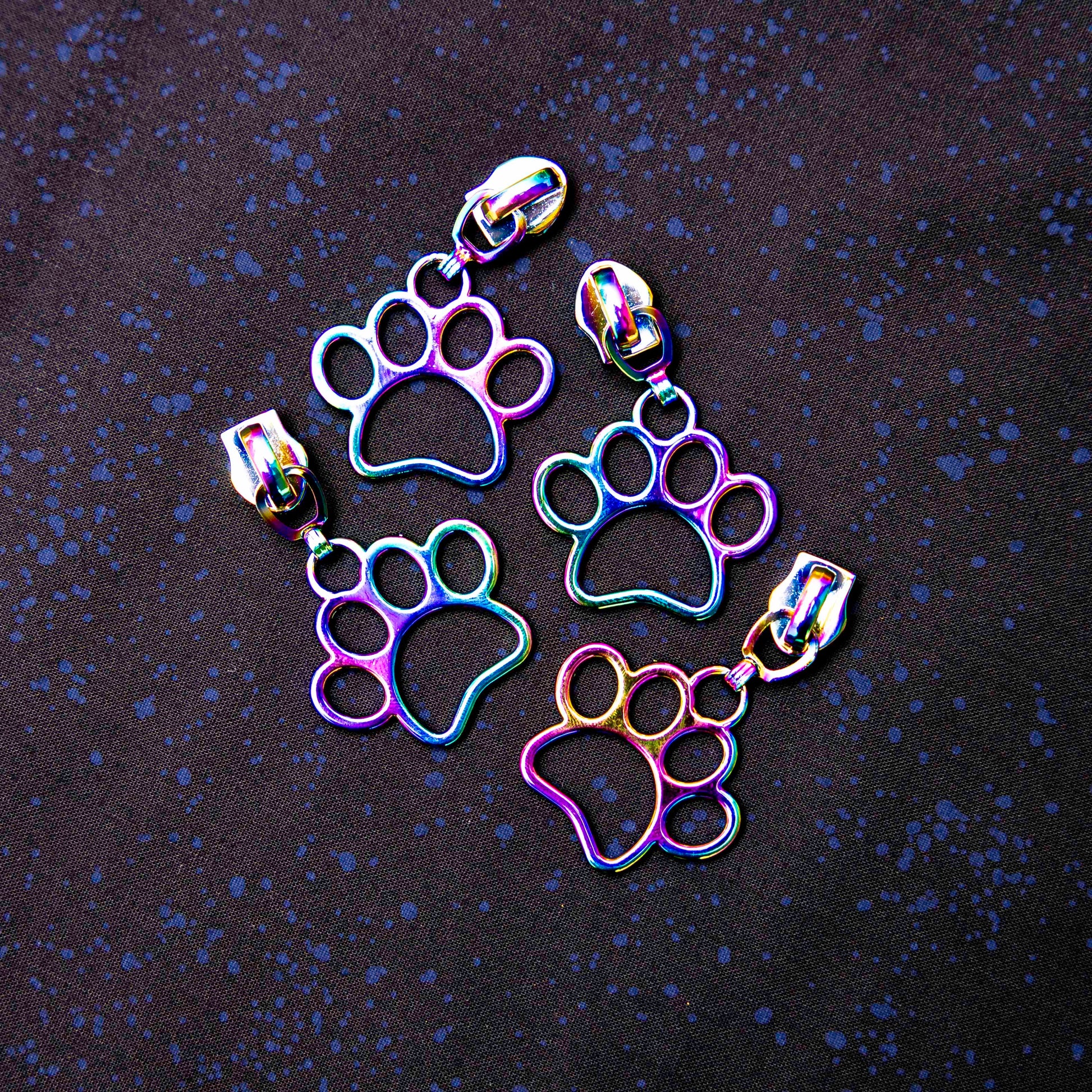 From Sassafras Lane this pack of 4 heavy duty, iridescent paw zipper pulls are ready to pop onto your #5 nylon zipper tape (which we have bunches of options of for you quilt bestie!!)