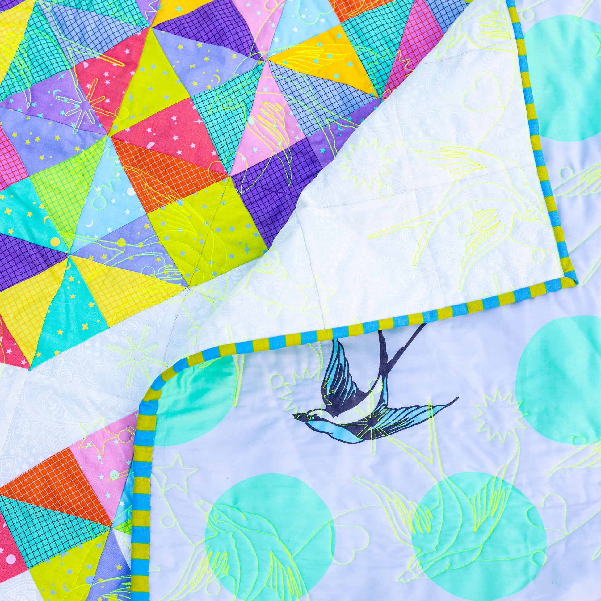 That's the vibe of this whole quilt, inspired by these bright Tula Pink fabrics and Miss Tula herself living a colorful explosion of color of a life!