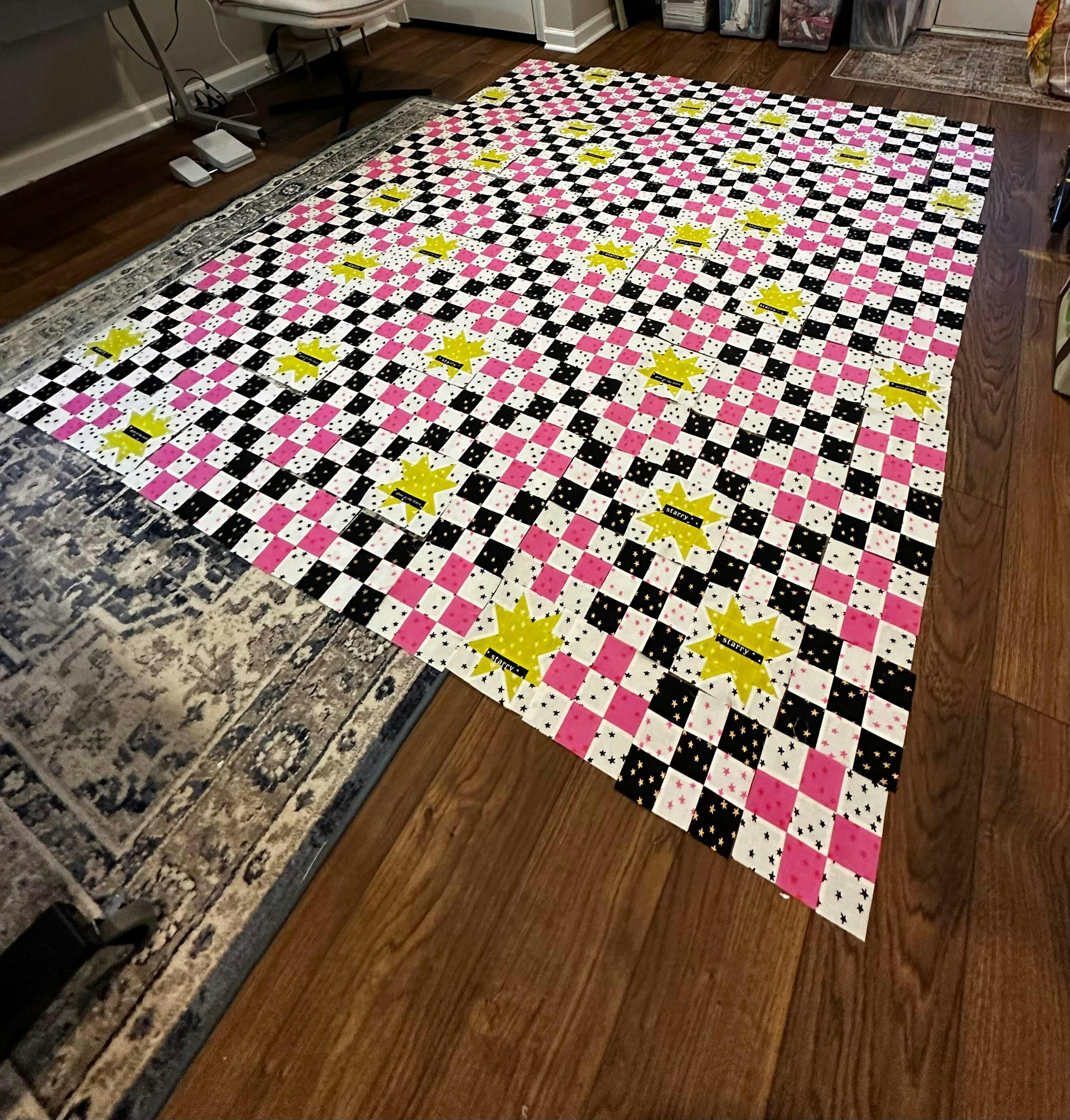 - All the fabrics seen here to make the quilt top (labeled for your ease!)